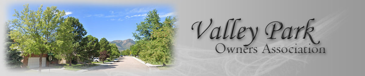 Valley Park Homeowners association is located in beautiful Northwestern Colorado Springs, Colorado just off of Woodmen Road. Valley Park is a quiet neighborhood with great view of Pikes Peak and the surrounding mountains.  Our community has easy access to shopping, downtown and I-25, making it a great place to live.